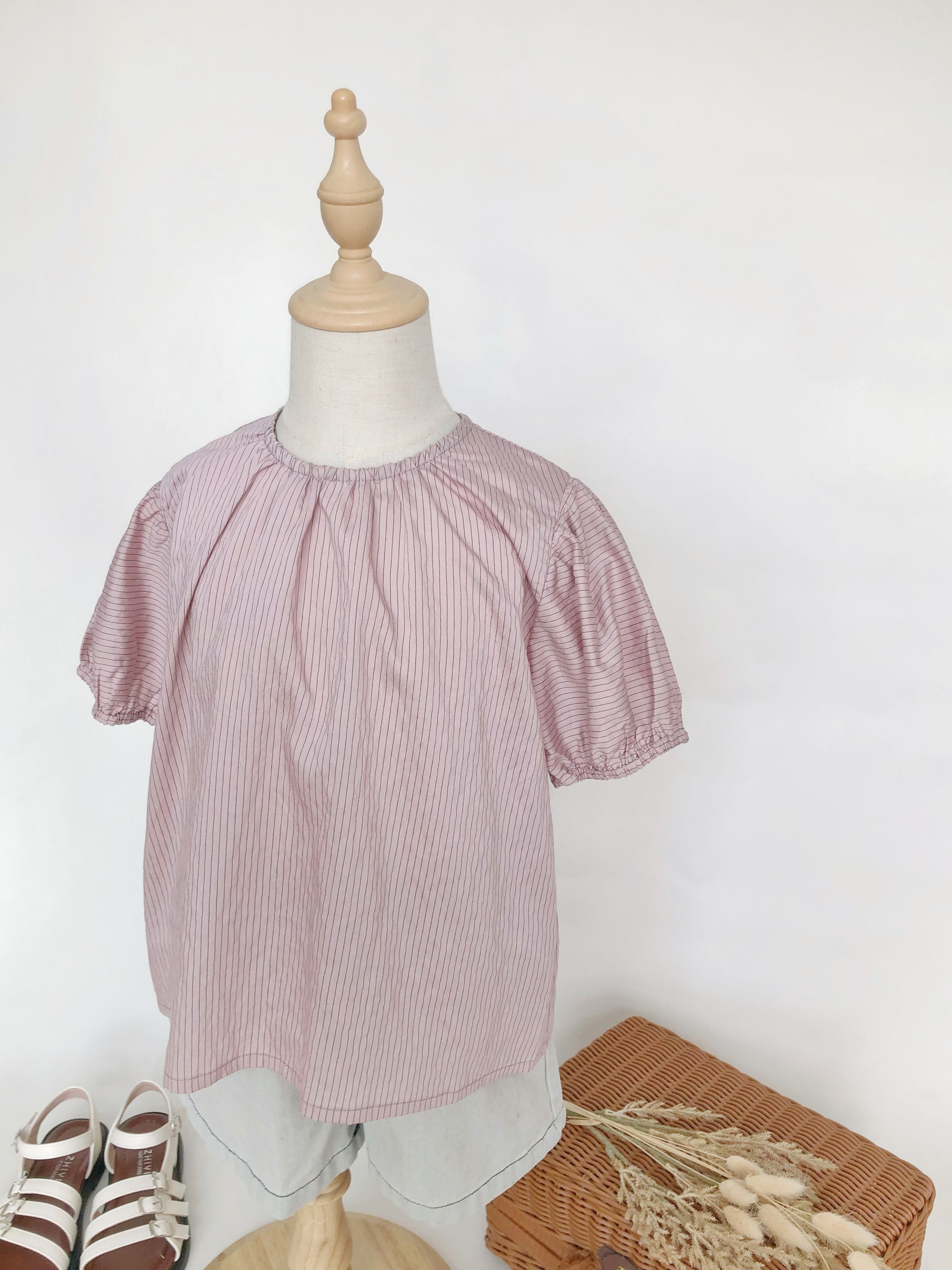 Boho Chic Pink Girls Dress with Puff Sleeves