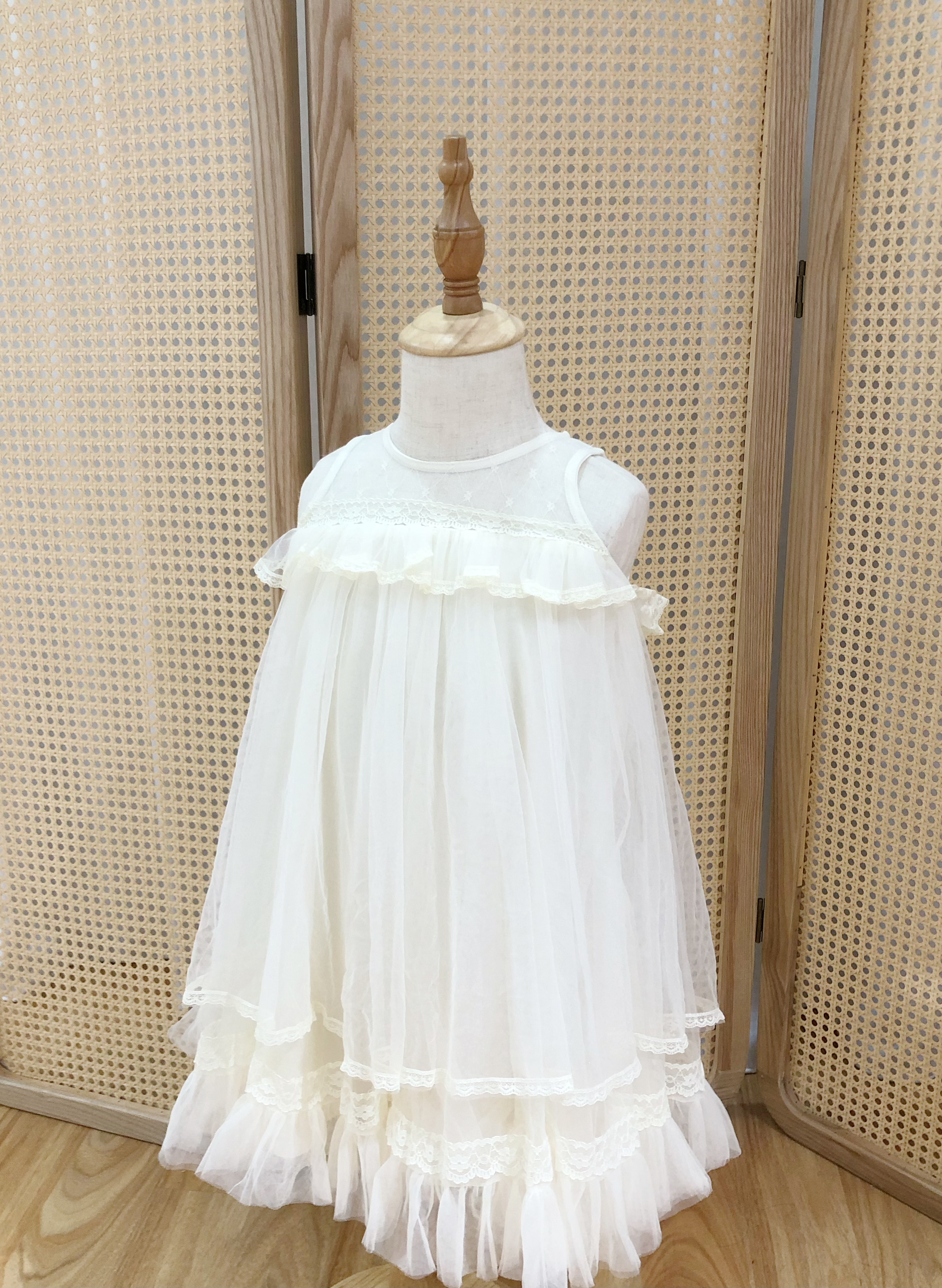 Elegant White Lace Tiered Tulle Dress