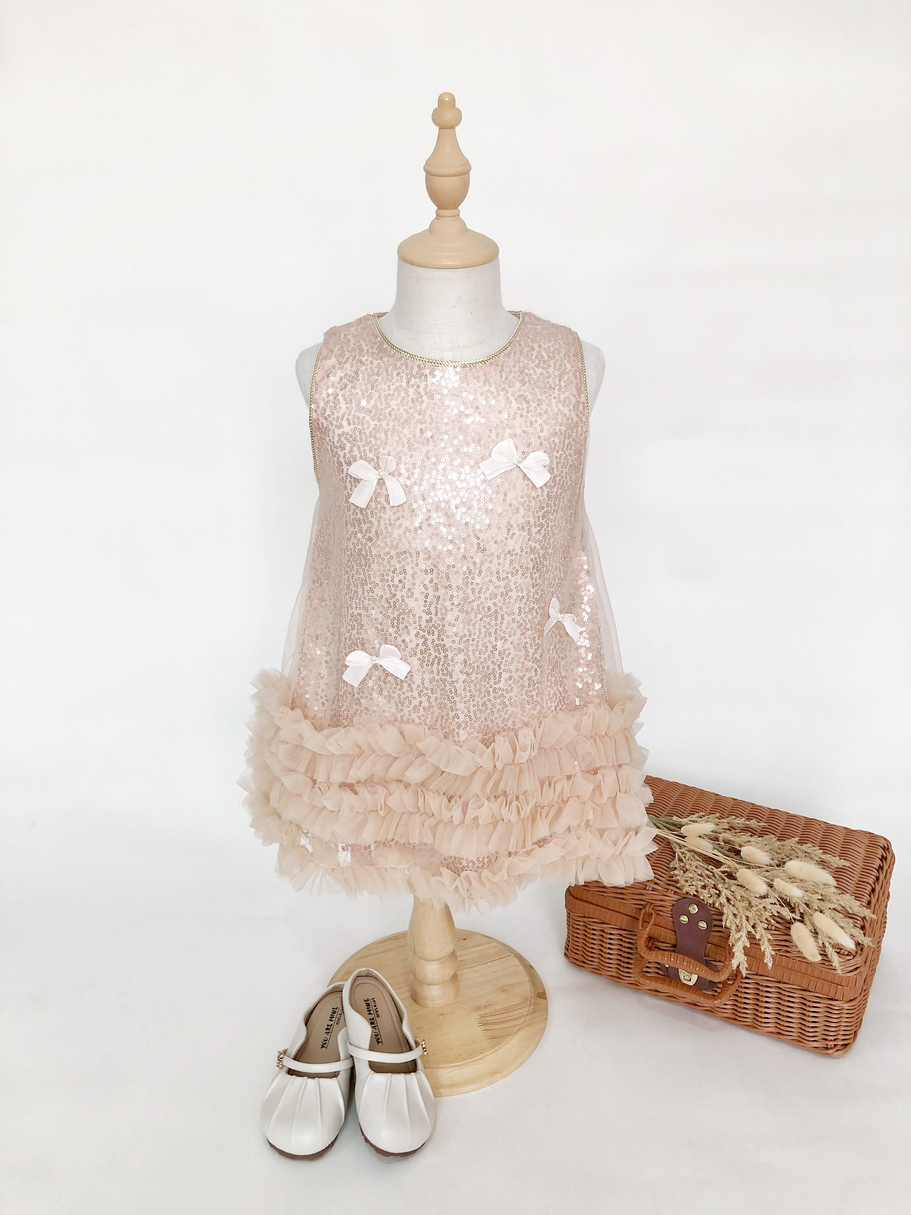 Sequin Bow Dress with Ruffle Hem