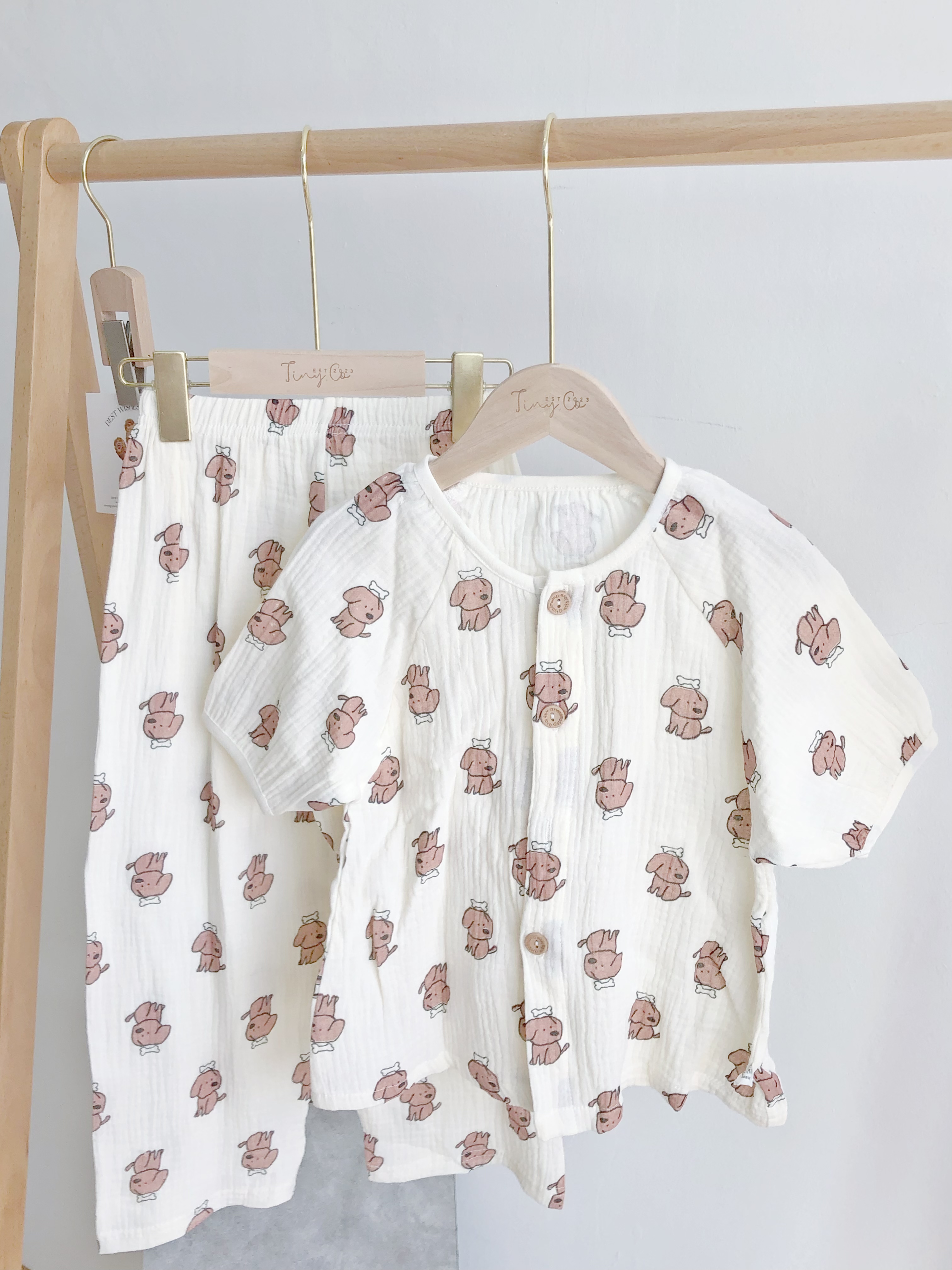 Toddler Short-sleeved Cardigan Cotton Pajamas