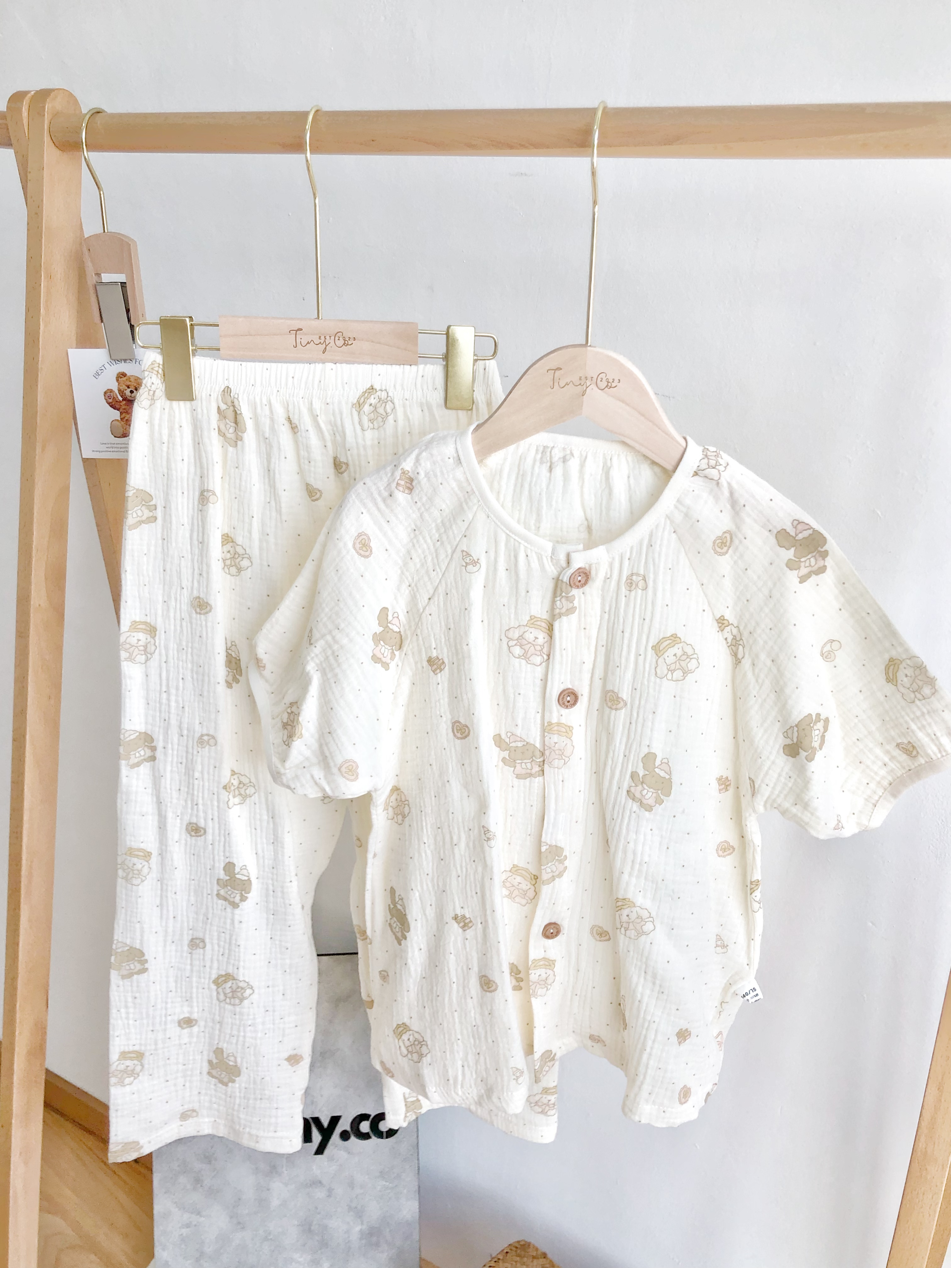 Polka Dot and Toddler Short-sleeved Cardigan Cotton Pajamas