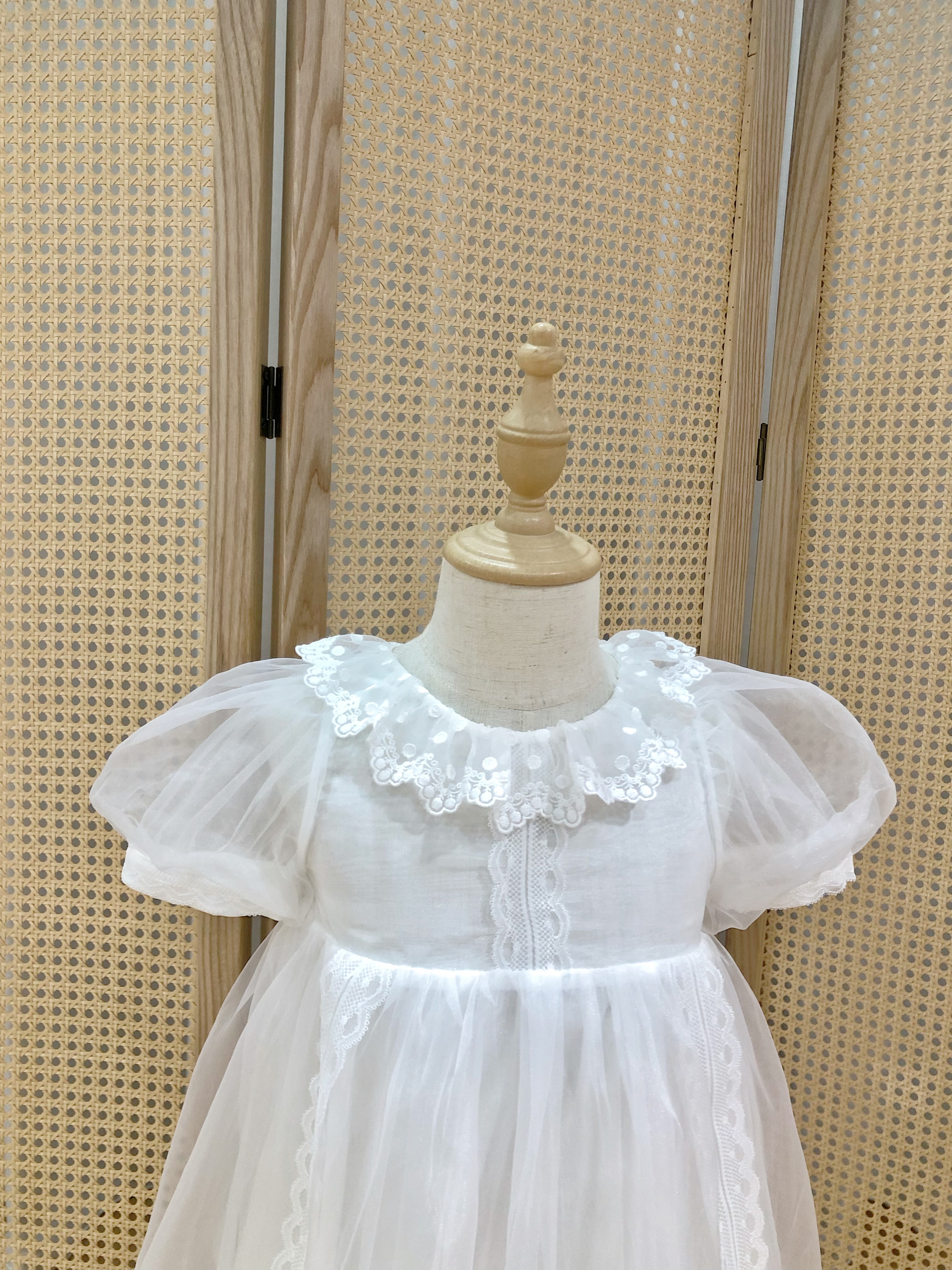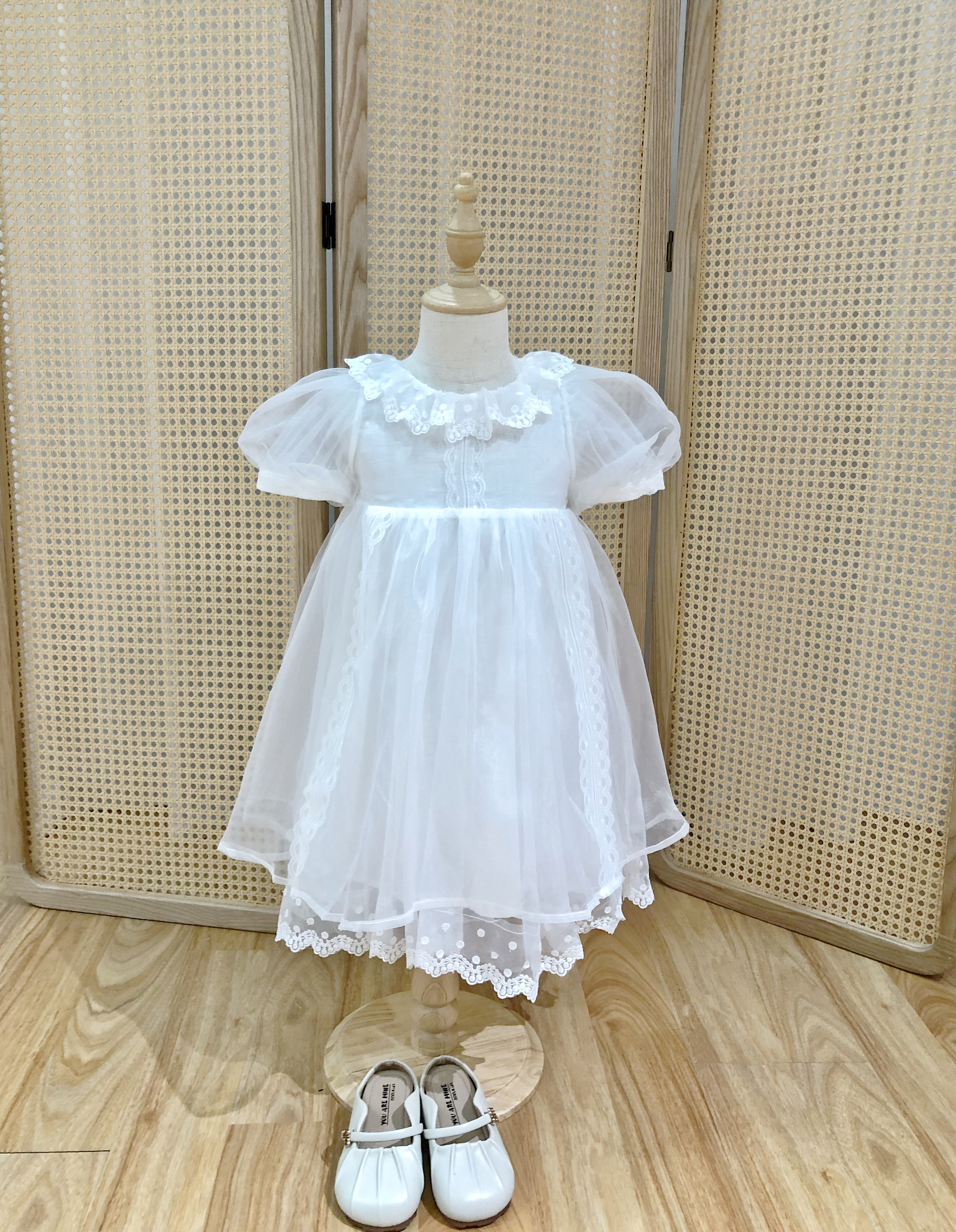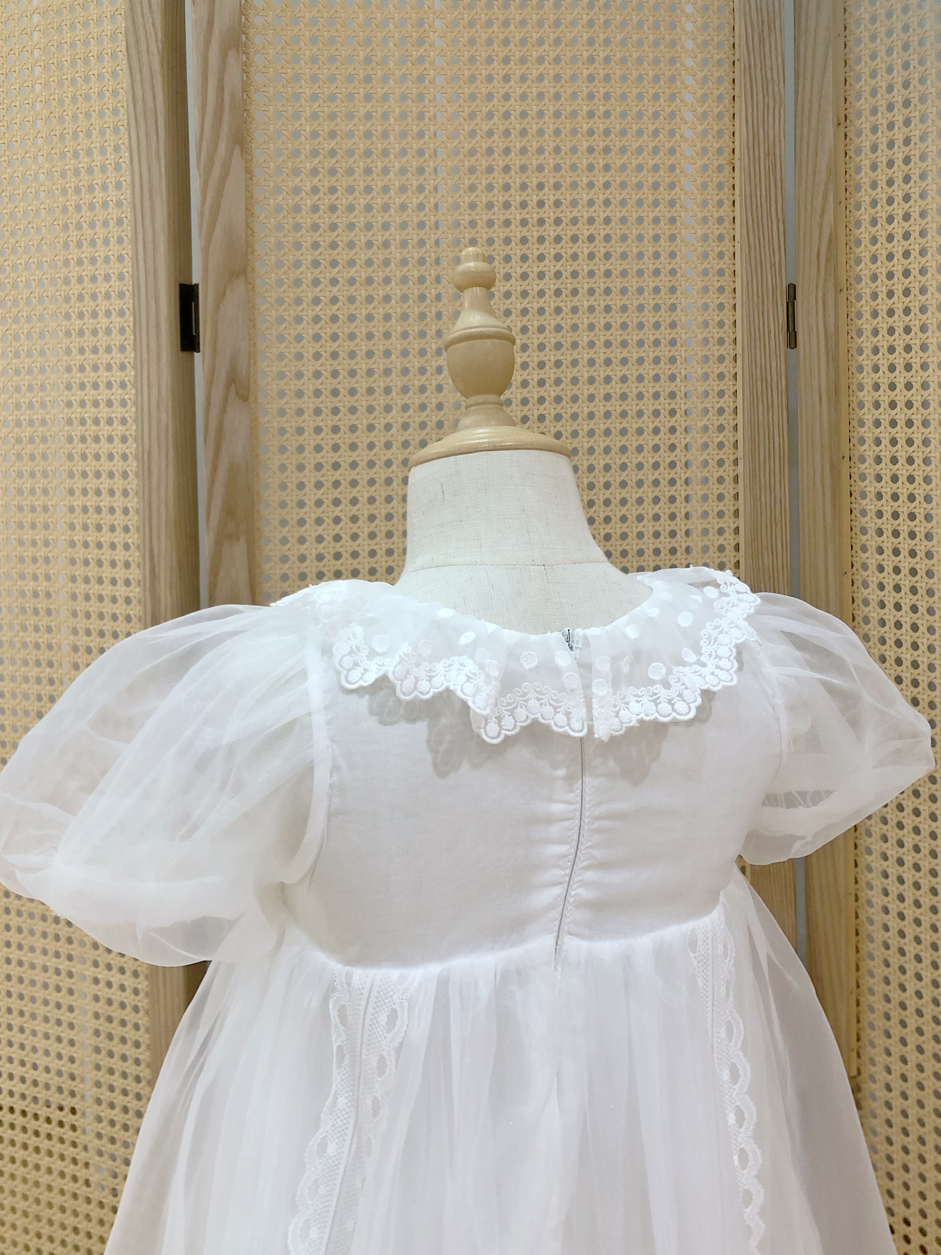 Vintage-Inspired Girl's White Dress with Puff Sleeves