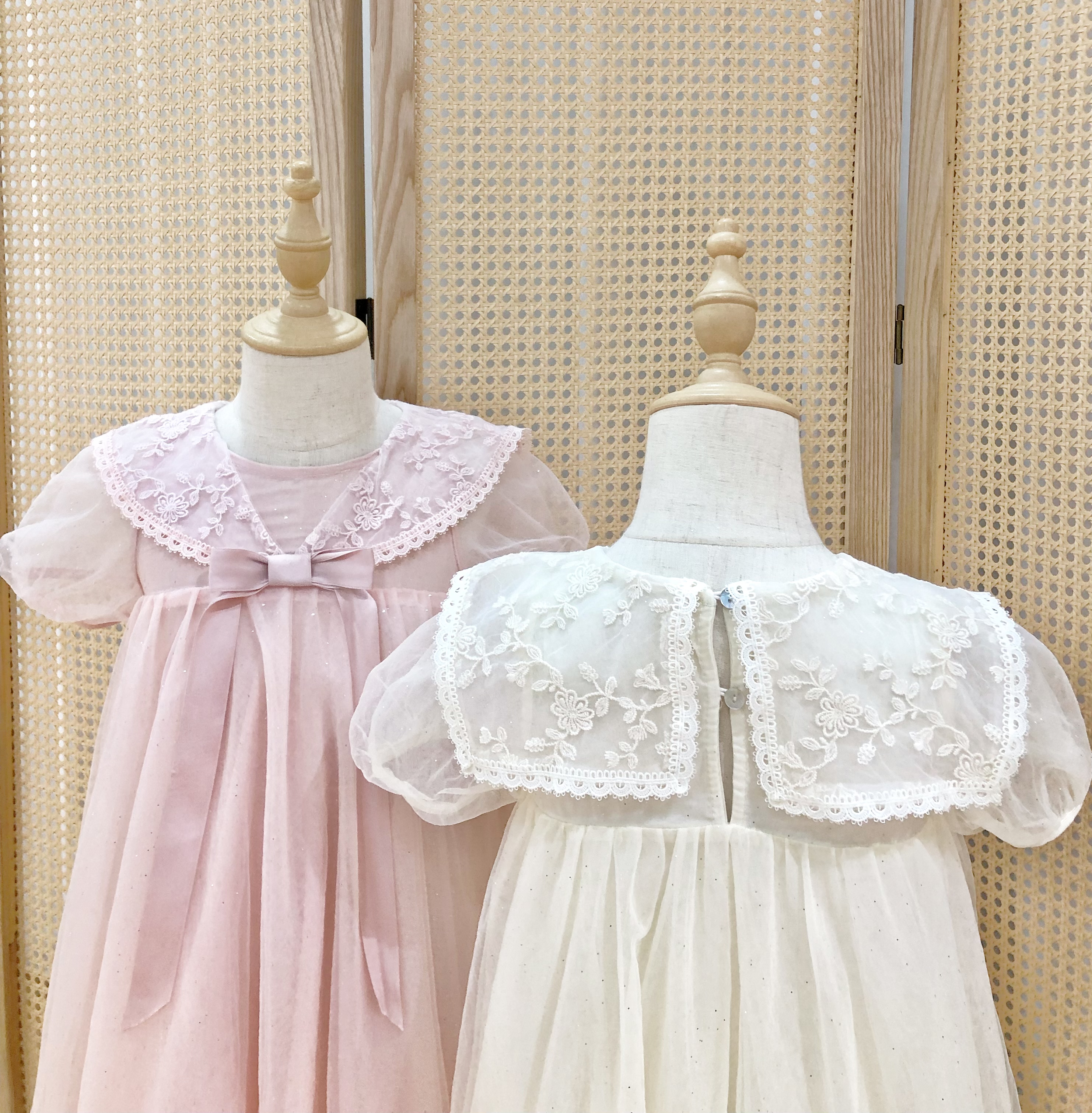 Vintage Inspired Girls' Dresses with Lace Trim and Ribbon
