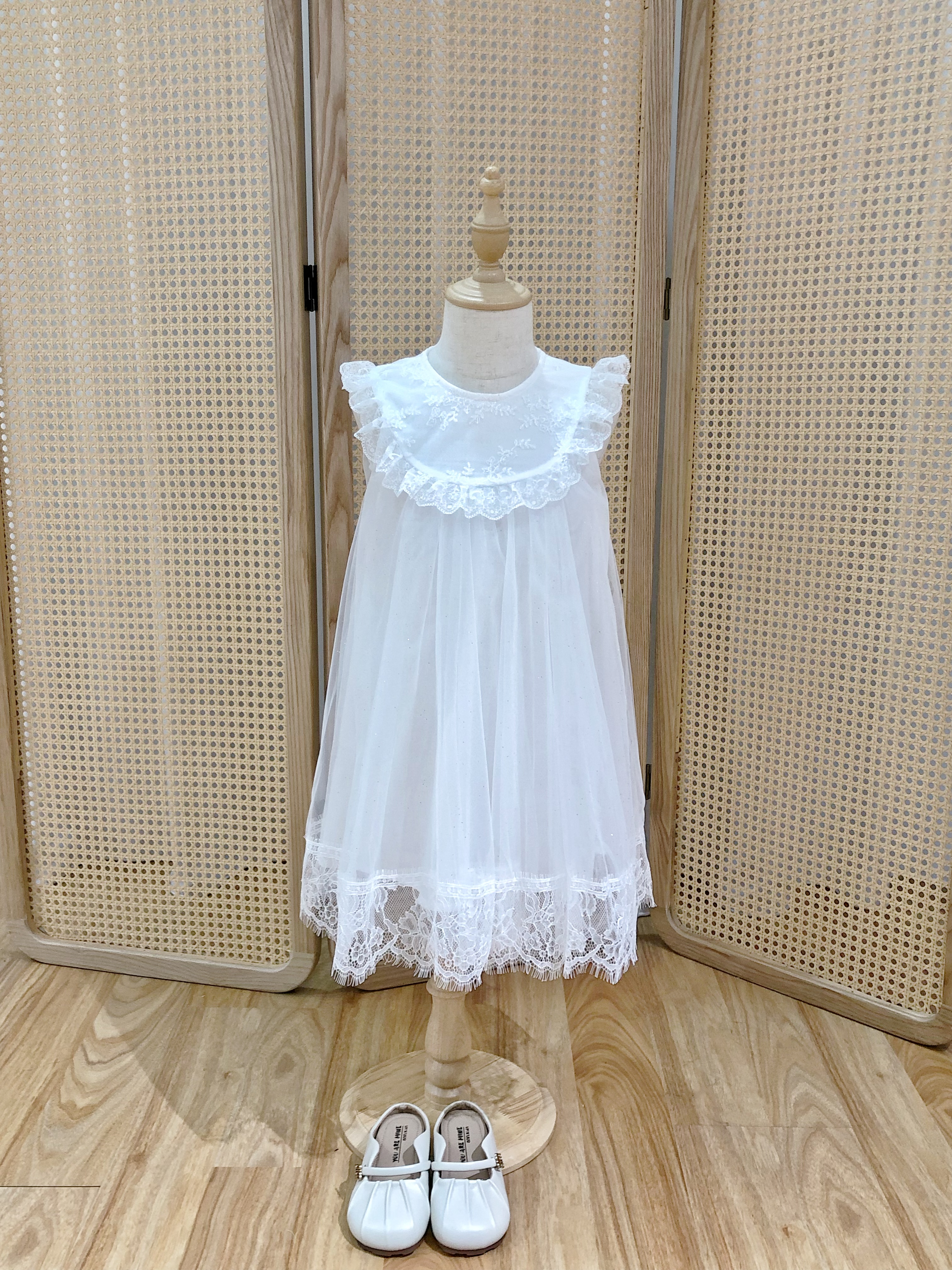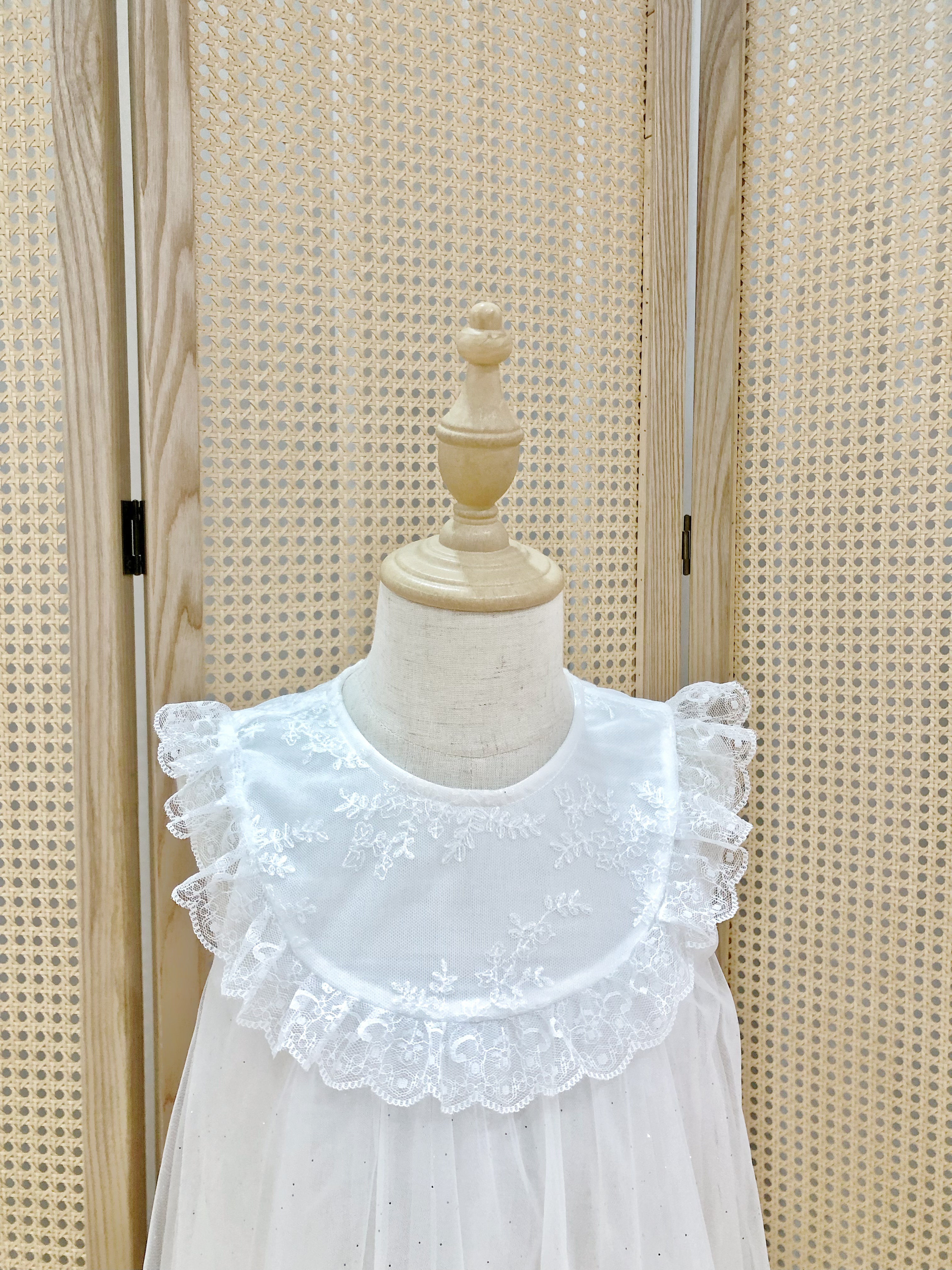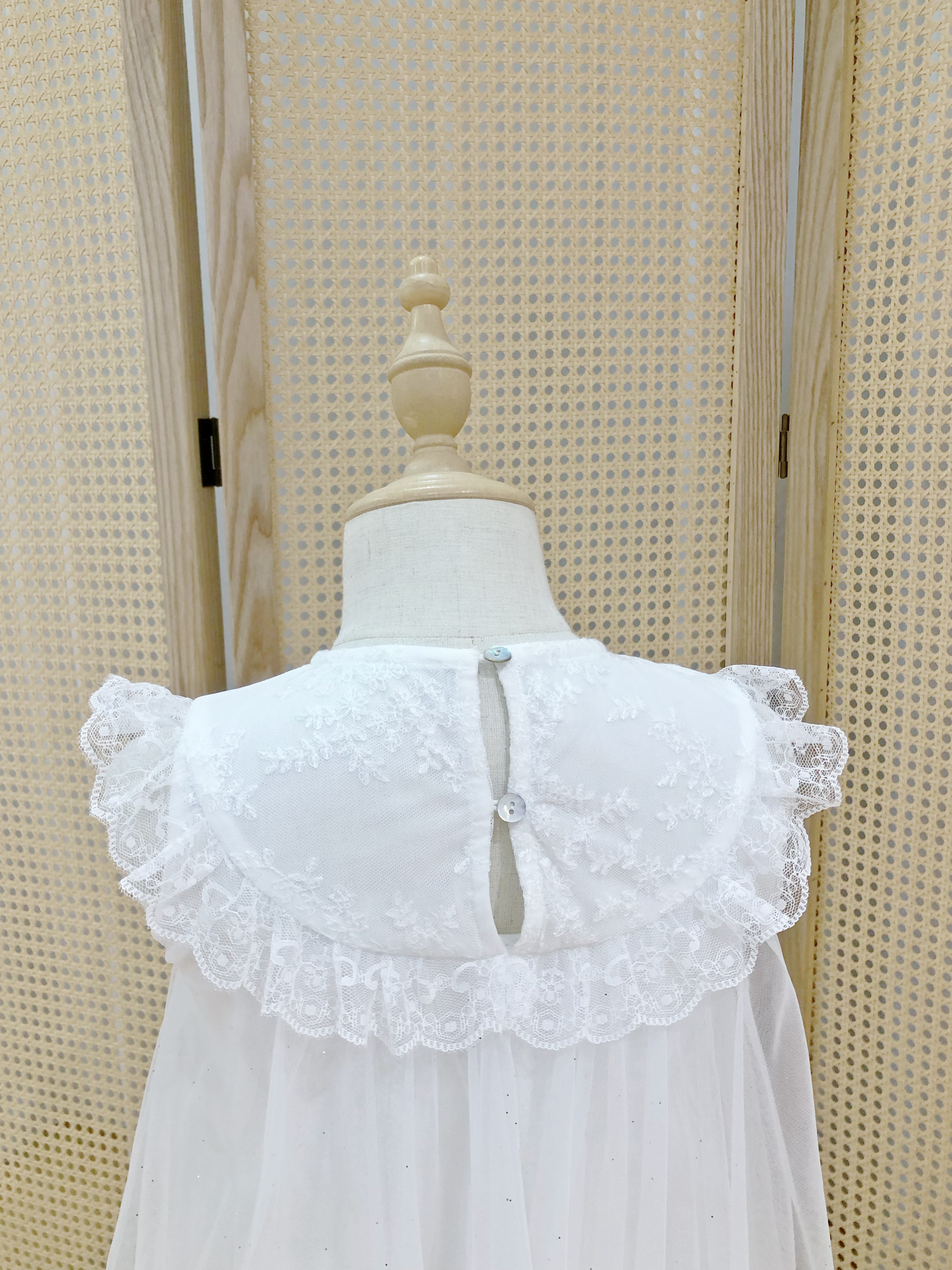 White Christening Dress with Lace Trim