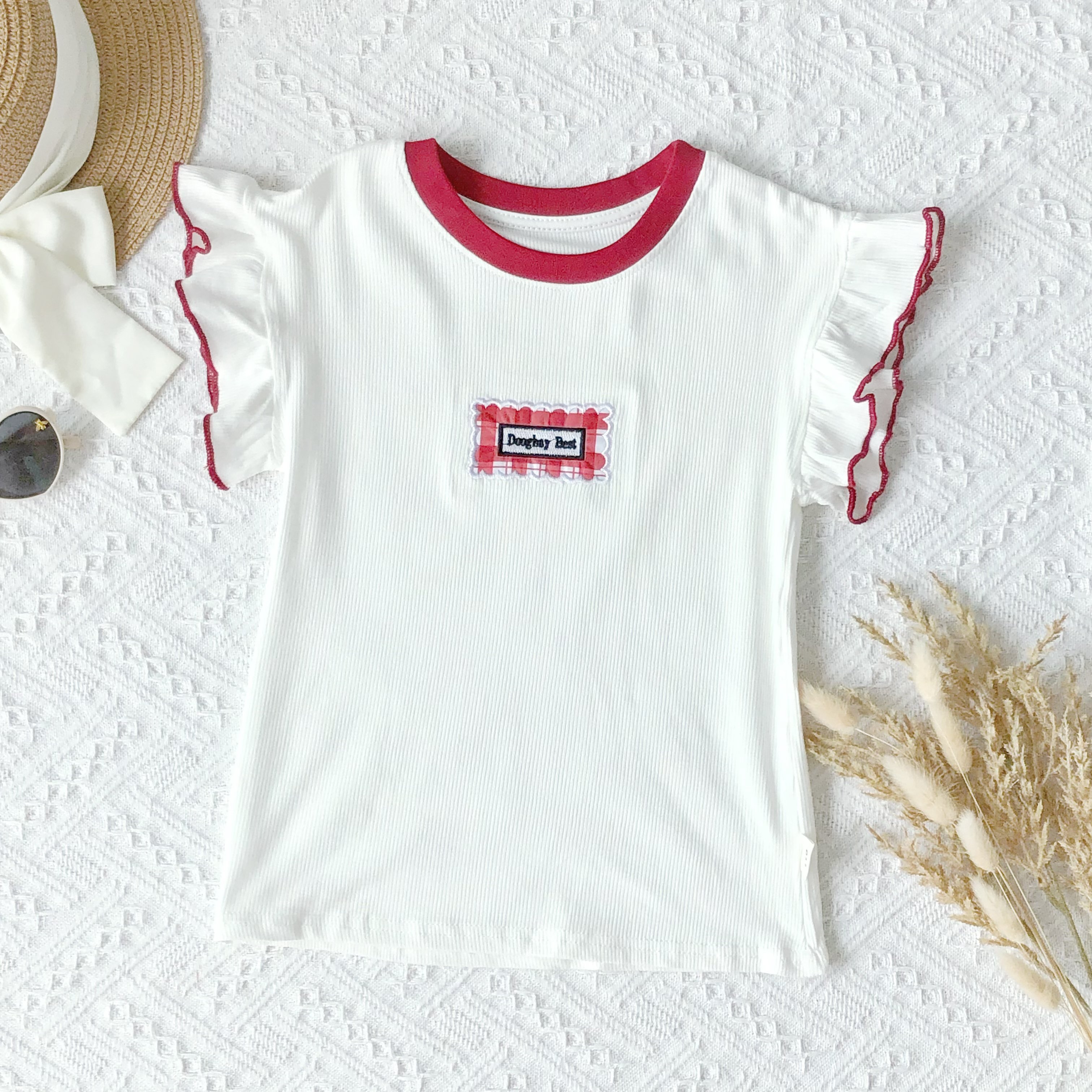 Girls' White Ruffle Top and Red Gingham Skirt Set